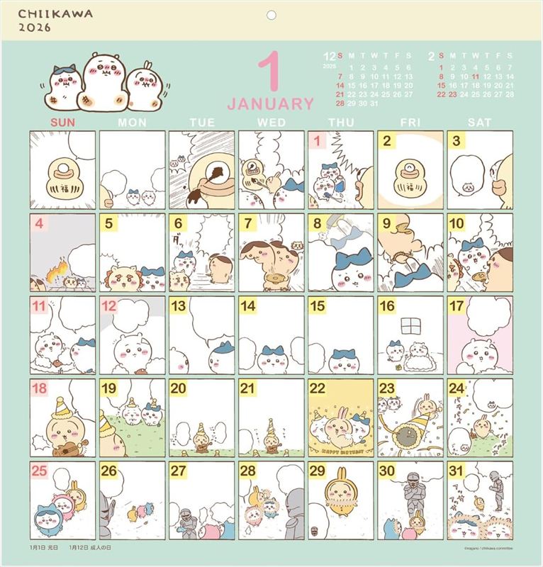 一年365天都可以享受不同chiikawa的獨特漫畫設計月曆!